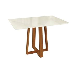 Cor: Off White | Matéria-prima: Eucalipto | Sistema de montagem: Parafuso Philips | Tampo: Vidro ou madeira | Altura: 80 | Largura: 120 | Ambiente indicado: Sala de jantar/cozinha | Forma: Retangular | Material da tampa: MDP BP | Requer montagem: Sim