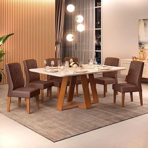Kit 6 Cadeiras Lídia Freijó/Moca, que são móveis modernos e sofisticados para agregar tanto no conforto para a hora das refeições diárias quanto conferir charme na queridinha do momento: a