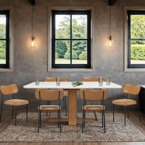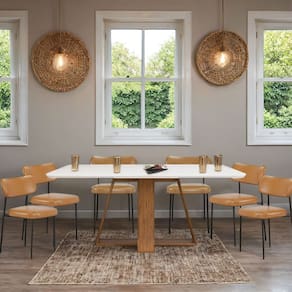 Um detalhe cativante da Mesa Kiara são as peças verticais com chanfros discretos em suas laterais, adicionando um toque único e elegante. Além disso, esta mesa oferece a conveniência de guardar as cadeiras sob o tampo, otimizando o espaço da sua sala de jantar e facilitando a limpeza.