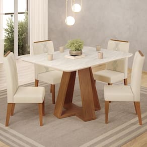 Mesa Kiara e Cadeiras de Jantar Yasmin, conjunto ideal para unir praticidade, conforto e estilo em seu ambiente.