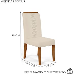 Mesa e Cadeiras de Jantar, ideal para unir praticidade, conforto e estilo em seu ambiente. Estrutura em MDP/MDF (18/25mm), acabamento em pintura UV texturizada. Possui tampo em MDF (sem vidro), cantos arredondados, base com peças geométricas cruzadas e sapatas deslizadoras. As cadeiras possuem assento e encosto estofados com espuma D20 e D13 revestidos em tecido 100% poliéster, encosto com detalhe em bordado, espaldar em MDF revestido (pega) e 4 pés em MDF de 25 mm. Este produto será entregue em 4 volumes.