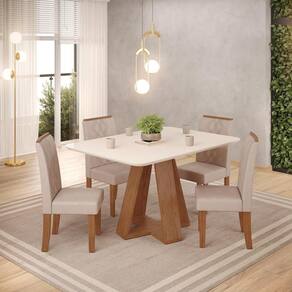 Com visual imponente e acabamento sofisticado, a Mesa de Jantar Kiara com Tampo Chanfrado é a escolha perfeita para quem deseja aliar elegância e funcionalidade na sala de jantar.