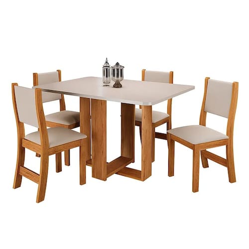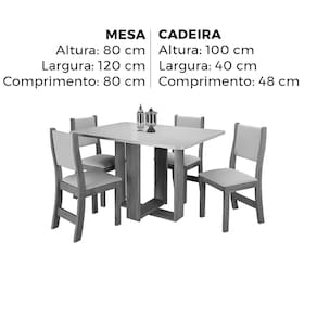Mesa de Jantar Lidi com 4 Cadeiras Viero A Mesa de Jantar Lidi com 4 Cadeiras Viero é a escolha ideal para quem busca unir funcionalidade, conforto e estilo em um só ambiente. Com um design contemporâneo e elegante, ela se destaca pelos detalhes sofisticados e pela harmonia entre a mesa de linhas limpas e as cadeiras com encosto ergonômico e acabamento refinado. Perfeita para refeições em família ou encontros com amigos, essa composição oferece um toque acolhedor e moderno à sua sala de jantar.\nMEDIDAS\nAltura (Mesa) 80 cm\nComprimento (Mesa) 120 cm\nLargura (Mesa) 80 cm\nAltura (Cadeira) 100 cm\nComprimento (Cadeira) 48 cm\nLargura (Cadeira) 40 cm\nCARACTERÍSTICAS\nFabricante Viero\nModelo Mesa de Jantar Lidi\nAmbiente Sala de Jantar\nEstrutura MDP / MDF\nPreenchimento Assento Espuma D16\nPossui Vidro Não\nRevestimento Tecido Veludo\nNecessita Montagem Sim\nAcompanha Manual de Instalação Sim\nINFORMAÇÕES IMPORTANTES\nObjetos decorativos que porventura apareçam na foto, não acompanham o produto. Não nos responsabilizamos pela montagem/instalação dos produtos.\nMontagens, desmontagens e instalações são responsabilidades do cliente. Indicamos que contrate uma empresa de montagem ou um montador de sua confiança.\nAlém disso, favor verificar se os pés e acessórios estão dentro do forro inferior do produto. Em suma, todas as informações divulgadas sobre o produto são de responsabilidade do Fabricante.\nAs cores do produto podem variar de acordo com o seu monitor, a iluminação do ambiente em que você está e até mesmo a sua percepção visual. Além da cor, pequenos detalhes e acabamentos podem não ficar evidentes na foto, por isso as imagens são meramente ilustrativas.