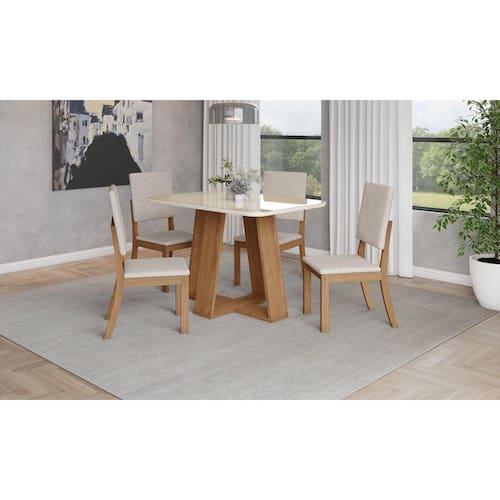 Mesa de Jantar Lins 04 Lugares 1.200mm Tampo canto arredondado com vidro. Cadeira Milla: Densidade da espuma do Assento: D18. Densidade da espuma do Encosto: D18. Medidas; Mesa: A: 800 x L: 1200 x P: 900 mm Cadeira: A: 945 x L: 415 x P: 535 mm Grantia: 90 dias. Recomendação de limpeza: Usa pano levemente umedecido com água, seguido por pano seco. Evitar exposição ao sol, para aumentar a durabilidade da cor do tecido. Não usar escova e/ou produtos abrasivos. Montagem: Montagem, desmontagem e outras instalações serão de responsabilidade do cliente. Não nos responsabilizamos, no ato da entrega, por subir escadas/elevadores ou pelo transporte por guincho em apartamentos. Eventuais despesas são de responsabilidade do comprador; Observações importantes: A tonalidade da cor do produto pode variar de acordo com a sua tela, a iluminação do ambiente ou sua percepção visual Lembrando que são fotos ilustrativas tratadas em estúdios podendo haver pequena diferença nas cores A montagem será de responsabilidade do comprador; Não nos responsabilizamos, no ato da entrega, por subir escadas/elevadores ou transporte por guincho em apartamentos. Eventuais despesas são de responsabilidade do comprador; Confira as dimensões deste produto e certifique-se de que passará normalmente por supostos elevadores, portas, escadas e/ou corredores de sua residência; Para mais informações, acesse nossa Central de Atendimento. Marca: LM DECOR
