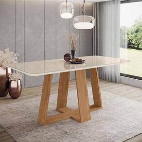 Mesa de Jantar Lins 180 cm Canto Arredondado com Vidro Nature Off White – Henn