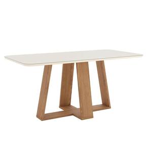Mesa de Jantar Lins 180 cm Canto Arredondado com Vidro Nature Off White – Henn