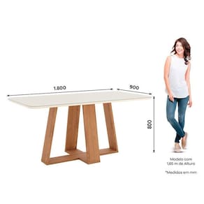 Mesa de Jantar Lins 180 cm Canto Arredondado com Vidro Nature Off White Henn