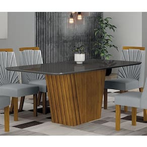 Mesa de Jantar Liz 1,80 com Vidro Freijó Chumbo – Leifer Móveis