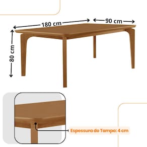Dimensões da Mesa: Altura: 80 cm Largura: 180 cm Profundidade: 90 cm