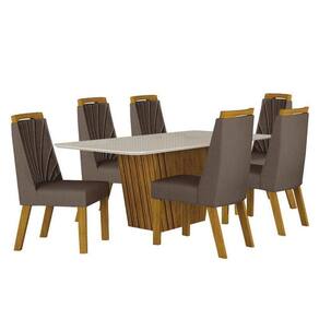 Mesa de Jantar Liz 180x90 Freijó Off White com 6 Cadeiras Freijó Joli Camurça Leifer Móveis