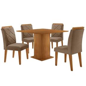 Mesa De Jantar Loren 90cm Mdf 4 Cad Melissa Moderna Mobilia Veludo Capuccino/naturalle Laminado Mesa Loren com Cadeiras Melissa A Mesa Loren e a definicao perfeita de elegancia contemporanea. Com um design imponente e minimalista, ela se destaca pela sua base em formato de pilar, que confere uma presenca marcante e moderna ao ambiente. Ideal para quem valoriza nao apenas funcionalidade, mas tambem estilo e personalidade na decoracao. Seu tampo em MDF com 25mm de espessura e cantos retos traz um acabamento refinado, garantindo durabilidade e resistencia para o uso no dia a dia.