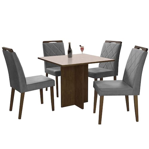 MEDIDAS DA MESA Altura 78 cm Comprimento 80 cm Largura 120 cm MEDIDAS DAS CADEIRAS Altura 96,5 cm Comprimento 44 cm Largura 56 cm CARACTERÍSTICAS Modelo Mesa de Jantar Los Angeles 120x80cm Tipo do produto Mesa de Jantar Ambiente Sala de Estar Material da Estrutura MDF Tamanho Solteiro Possui Cadeira 04 Possui Sapatas Sim Possui Vidro Sim Tipo de Pintura UltraVioleta Tipo de Tampo MDF / Vidro Tipo de Conforto das Cadeiras Espuma D23 Tipo de Tecido do Revestimento das Cadeiras Tecido Suede Garantia 3 meses INFORMAÇÕES IMPORTANTES Objetos decorativos que porventura apareçam na foto, não acompanham o produto. Não nos responsabilizamos pela montagem/instalação dos produtos. Montagens, desmontagens e instalações são responsabilidades do cliente. Indicamos que contrate uma empresa de montagem ou um montador de sua confiança. Além disso, favor verificar se os pés e acessórios estão dentro do forro inferior do produto. Em suma, todas as informações divulgadas sobre o produto são de responsabilidade do Fabricante. As cores do produto podem variar de acordo com o seu monitor, a iluminação do ambiente em que você está e até mesmo a sua percepção visual. Além da cor, pequenos detalhes e acabamentos podem não ficar evidentes na foto, por isso as imagens são meramente ilustrativas.