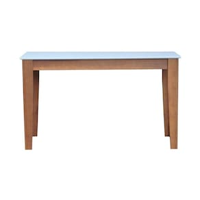 - Materiais: Estrutura em madeira de pinus maciço envernizado e tampo em MDF laqueado
