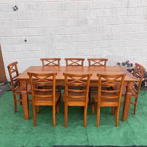 A Mesa Rústica em Madeira De Demolição Cadeiras ABC da Sudeste Rústico é para você que procura uma peça tradicional e confortável. Altamente resistente e durável, a mesa possui 2,00 m de comprimento e 0,90 cm de largura, acompanha 8 cadeiras com encosto abaulado, gerando conforto com sensação de abraçar suas costas. Produzida em madeira de demolição. É perfeita para reunir a familia em áreas gourmet, áreas de churrasco, cozinhas e salas de jantares . Deixe seu ambiente ainda mais bonito e sofisticado com A Mesa e as cadeiras em Madeira de Demolição da Sudeste Rústico.