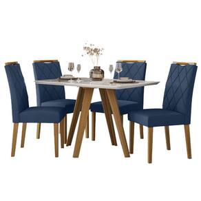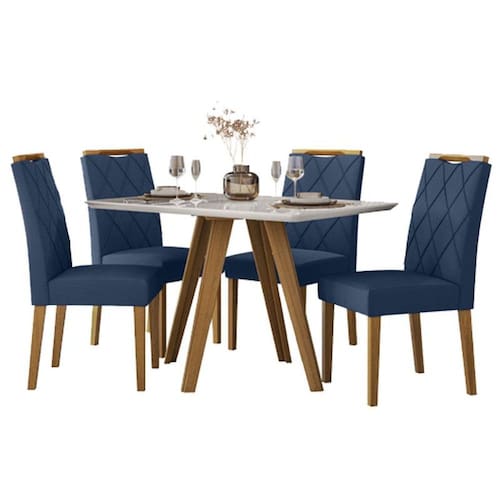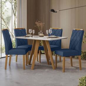 Mesa de Jantar Mariah 120x80 cm com Vidro Ype Off White e 4 Cadeiras Sarah Veludo Azul Marinho – New Ceval