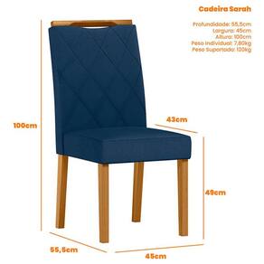 Cadeira para Mesa de Jantar Sarah Kit 2 peças Ype Veludo Azul Marinho – New Ceval