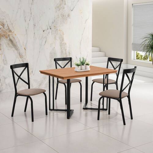 Características: Modelo: Michigan Tipo: Mesa de Jantar Material do Tampo: Madeira Maciça Material da Base: Ferro Cor do Tampo: Castanho Cor da Base: Preta Design moderno e funcional