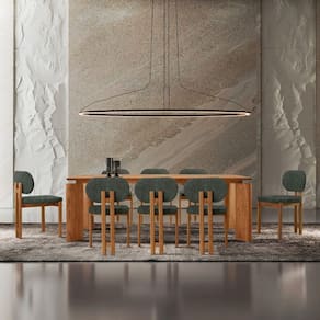 Em meio a correria do cotidiano, ha lugares que convidam a pausar, apreciar e compartilhar momentos inesqueciveis. A Sala de Jantar Nala e essa harmonia perfeita entre a grandiosidade da natureza e a sofisticacao do design contemporaneo. Um conjunto imponente de 8 lugares, feito para elevar seu ambiente ao mais alto nivel de requinte.