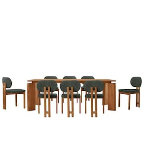 Mesa De Jantar Nala 220cm Madeira Tampo Laminado 8 Cadeira Nala Jade Imbuia Natural