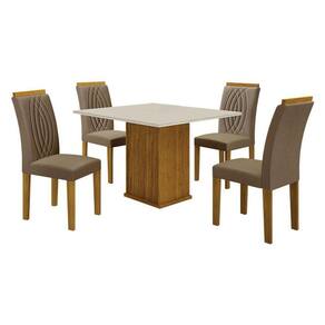 Mesa de Jantar Napoli 90x90 Reto Freijó Decor Off White com 4 Cadeiras Doha MDF Freijó Joli Camurça Leifer Móveis