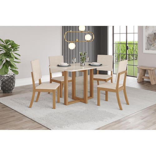 Mesa de Jantar 04 Lugares Natalí 1,200mm Tampo canto arredondado com vidro. Cadeira Milla: Densidade da espuma do Assento: D18. Densidade da espuma do Encosto: D18. Medidas; Mesa: A: A: 800 x L: 1200 x P: 800 mm Cadeira: A: 945 x L: 415 x P: 535 mm Grantia: 90 dias. Recomendação de limpeza: Usa pano levemente umedecido com água, seguido por pano seco. Evitar exposição ao sol, para aumentar a durabilidade da cor do tecido. Não usar escova e/ou produtos abrasivos. Montagem: Montagem, desmontagem e outras instalações serão de responsabilidade do cliente. Não nos responsabilizamos, no ato da entrega, por subir escadas/elevadores ou pelo transporte por guincho em apartamentos. Eventuais despesas são de responsabilidade do comprador; Observações importantes: A tonalidade da cor do produto pode variar de acordo com a sua tela, a iluminação do ambiente ou sua percepção visual Lembrando que são fotos ilustrativas tratadas em estúdios podendo haver pequena diferença nas cores A montagem será de responsabilidade do comprador; Não nos responsabilizamos, no ato da entrega, por subir escadas/elevadores ou transporte por guincho em apartamentos. Eventuais despesas são de responsabilidade do comprador; Confira as dimensões deste produto e certifique-se de que passará normalmente por supostos elevadores, portas, escadas e/ou corredores de sua residência; Para mais informações, acesse nossa Central de Atendimento. Marca: LM DECOR