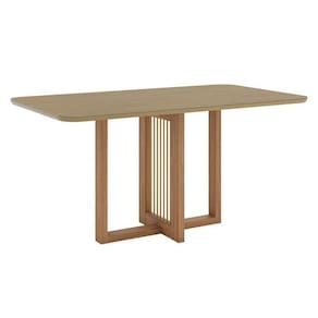 Mesa de Jantar Natalí 160 cm Ambiente Canto Arredondado com Vidro Nature Henn