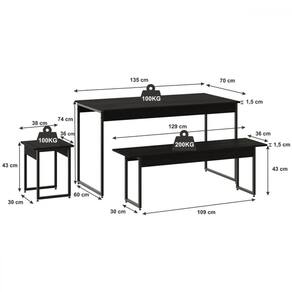 - Medidas da Cadeira ( A x L x P ): Banco 43 x 129 x 36 Cm - Banqueta 43 x 38 x 36 Cm