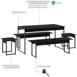 - Acompanha: Mesa de Jantar + 6 Lugares + Kit Ferragem + Manual de Montagem