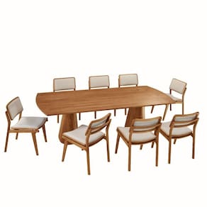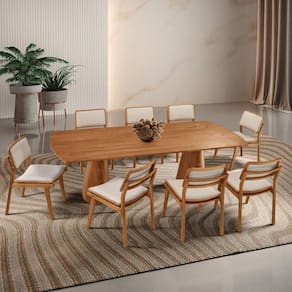 Feitas em madeira macica e cuidadosamente estofadas no assento e encosto, proporcionam o equilibrio perfeito entre conforto e design. Seu formato envolvente acolhe e convida a desfrutar de momentos inesqueciveis ao redor da mesa.