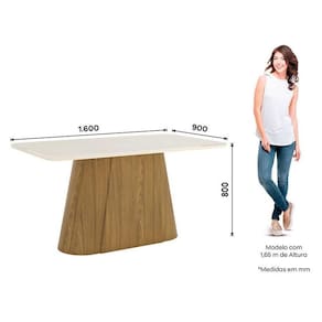 Mesa de Jantar Olivia Ambiente 160 cm Canto Arredondado com Vidro Nature Off White Henn