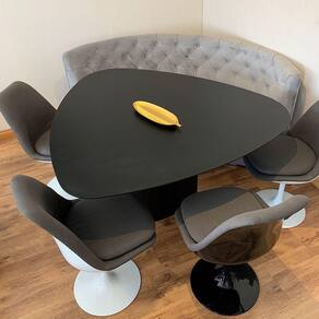 A mesa de Jantar Cone de alto padrão foi criada para possibilitar um design moderno com ousabilidade para a sala de jantar, seu formato mantém o espaçamento para as pernas dando conforto ao usá-la, é requintada se adequando a qualquer tipo de ambiente, clássico ou moderno, seu design é valorizado em decorações residenciais ou comerciais, elas são ideais para ambientes sofisticados.