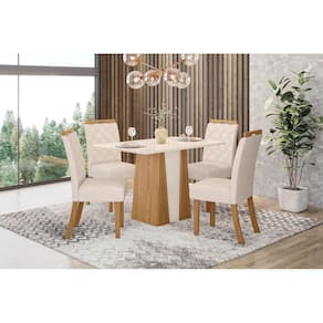 Mesa de Jantar 04 Lugares Orus 1.200 mm Tampo retangular em MDF 25 mm com pintura especial, a fim de garantir mais durabilidade ao produto. Tampo canto reto sem vidro. Cadeira Bella: Densidade da espuma do Assento: D18. Densidade da espuma do Encosto: D15 Medidas; Mesa: A: 800 x L: 1200 x P: 800 mm Cadeira: A: 1005 x L: 430 x P: 560 mm Grantia: 90 dias. Recomendação de limpeza: Usa pano levemente umedecido com água, seguido por pano seco. Evitar exposição ao sol, para aumentar a durabilidade da cor do tecido. Não usar escova e/ou produtos abrasivos. Montagem: Montagem, desmontagem e outras instalações serão de responsabilidade do cliente. Não nos responsabilizamos, no ato da entrega, por subir escadas/elevadores ou pelo transporte por guincho em apartamentos. Eventuais despesas são de responsabilidade do comprador; Observações importantes: A tonalidade da cor do produto pode variar de acordo com a sua tela, a iluminação do ambiente ou sua percepção visual Lembrando que são fotos ilustrativas tratadas em estúdios podendo haver pequena diferença nas cores A montagem será de responsabilidade do comprador; Não nos responsabilizamos, no ato da entrega, por subir escadas/elevadores ou transporte por guincho em apartamentos. Eventuais despesas são de responsabilidade do comprador; Confira as dimensões deste produto e certifique-se de que passará normalmente por supostos elevadores, portas, escadas e/ou corredores de sua residência; Para mais informações, acesse nossa Central de Atendimento. Marca: LM DECOR