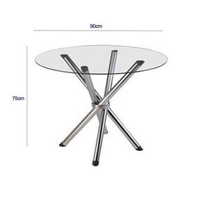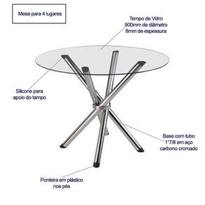 Acompanhando a mesa, está o tampo de vidro incolor com 90cm de diâmetro e 8mm de espessura. O vidro é enviado super bem embalado em uma caixa de madeira, para garantir que chegue em perfeito estado de conservação. Com capacidade para 4 lugares, a mesa redonda cromada é ideal para reunir amigos e familiares em momentos especiais.