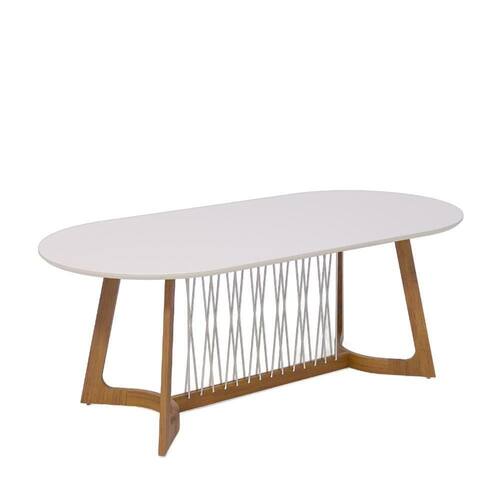 Cor: Cinamomo e Off White | Material: MDF e Vidro | Acabamento: Laca e bordas chanfradas | Quantidade do Produto: 1 | Marca: Cimol | Quantidade de Lugares: 6 | Formato do Tampo: Oval | Possui Suporte Giratório: Não | Possui Vidro: Sim | Possui Rodízio: Não | Material do Tampo: MDF e Vidro | Dobrável: Não | Possui Pés: Sim | Material dos Pés: Madeira Tauari | Pés Reguláveis: Não | Modelo: Tulipa | Altura: 79.5 | Largura: 100 | Profundidade: 210 | Garantia: 3 meses | Necessita de Montagem: Sim | Quantidade de Caixa de embalagem: 2 | Ambiente recomendado: Sala de Jantar/Cozinha | Inclui manual de montagem: Sim