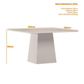Se você está em busca de uma mesa de jantar que una elegância e funcionalidade, a Mesa de Jantar Barbara 1,35 Ypê/Preto é a escolha perfeita. Com um design contemporâneo e materiais de alta qualidade, ela irá transformar o ambiente da sua casa, proporcionando momentos inesquecíveis ao redor da mesa. Dimensões do Produto Montado:Altura: 80cmLargura: 135cmProfundidade: 135cm Peso: Peso: 65,60Kg Características e Especificações Técnicas:Material do Produto: MDF