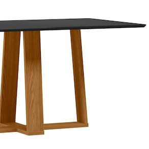 Mesa de Jantar para 6 Lugares 1,60m Tampo Mdf com Vidro Rubi Ypê/Preto - New Ceval