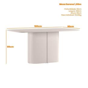 Você já imaginou transformar seu ambiente com um toque de elegância e charme? A Mesa Serena é a peça que faltava para dar vida nova à sua decoração. Com um design sofisticado, essa mesa é perfeita para quem busca aliar funcionalidade e beleza. Dimensões do Produto Montado:Altura: 80cmLargura:180cmProfundidade: 90cm Peso: Peso: 55,90Kg Características e Especificações Técnicas:Base: MDF