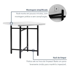 A mesa para sala de jantar quadrada é segura? Claro, é feita com material de qualidade e seguro. Acabamento: Pintura Acabamento da Base: Pintura Acabamento do Tampo: Pintura Ambiente Principal: Sala de Jantar codigo_ean: 7900288185082 Complexidade da Montagem: Baixa: pode ser montado por uma pessoa sozinha Cor: Preto/Branco Cor do Produto: Preto/Branco Design da Base: 4 Pés Dobrável: Sim Escala de Brilho: Semi-Brilho Espessura do Tampo: 18 mm Extensível: Não Itens Inclusos: 1 Mesa, Kit Ferragens e Manual de Montagem Linha ou Coleção: Pop Manual de Montagem e Instalação: https://product-hub-prd.madeiramadeira.com.br/764799312/documents/40d93654-d579-4d16-9f6a-5a086903e398303550573217513753787808.pdf Marca: Prima Design Material da Base: Aço Material do Tampo: MDF Material Principal: Aço Medida da Base (A x L x P): 72,5,3x86x86 Medida da Mesa (A x L x P): 74,3x86x86 Medida do Tampo (L x C x E): 86x86x18 Necessita Montagem: Sim Origem do Produto: Nacional Peso: 9 kg Possui Portas: Não Possui Rodízio: Não Possui Vidro: Não Recomendações de Uso, Manutenção e Limpeza: A estrutura deve ser limpa utilizando pano seco de algodão ou flanela. Se necessário, utilize panoumedecido apenas com água, secando o móvel em seguida. Não utilize solvente, álcool, acetona, lustra móveis, produtos abrasivos e outros produtos que contenham soda e ou ácidos para limpar e tirar manchas dos móveis. Não expor os móveis à luz solar e ambientes com umidade relativa elevada. Manter a estrutura metálica limpa, utilizando pano seco ou cera a base de silicone. Sistema de Montagem: Parafusos Suporta Até (kg): 40 kg Marca: Não Informado