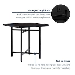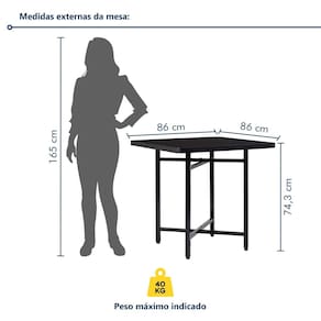 A mesa para sala de jantar quadrada é segura? Claro, é feita com material de qualidade e seguro. Acabamento: Pintura Acabamento da Base: Pintura Acabamento do Tampo: Pintura Ambiente Principal: Sala de Jantar codigo_ean: 7900288185099 Complexidade da Montagem: Baixa: pode ser montado por uma pessoa sozinha Cor: Preto Cor do Produto: Preto Design da Base: 4 Pés Dobrável: Sim Escala de Brilho: Semi-Brilho Espessura do Tampo: 18 mm Extensível: Não Itens Inclusos: 1 Mesa, Kit Ferragens e Manual de Montagem Linha ou Coleção: Pop Manual de Montagem e Instalação: https://product-hub-prd.madeiramadeira.com.br/186158196/documents/5c1b41e0-544a-4d56-b6e2-f50693e5c87f303551073217513753906596.pdf Marca: Prima Design Material da Base: Aço Material do Tampo: MDF Material Principal: Aço Medida da Base (A x L x P): 72,5,3x86x86 Medida da Mesa (A x L x P): 74,3x86x86 Medida do Tampo (L x C x E): 86x86x18 Necessita Montagem: Sim Origem do Produto: Nacional Peso: 9 kg Possui Portas: Não Possui Rodízio: Não Possui Vidro: Não Recomendações de Uso, Manutenção e Limpeza: A estrutura deve ser limpa utilizando pano seco de algodão ou flanela. Se necessário, utilize panoumedecido apenas com água, secando o móvel em seguida. Não utilize solvente, álcool, acetona, lustra móveis, produtos abrasivos e outros produtos que contenham soda e ou ácidos para limpar e tirar manchas dos móveis. Não expor os móveis à luz solar e ambientes com umidade relativa elevada. Manter a estrutura metálica limpa, utilizando pano seco ou cera a base de silicone. Sistema de Montagem: Parafusos Suporta Até (kg): 40 kg Marca: Não Informado