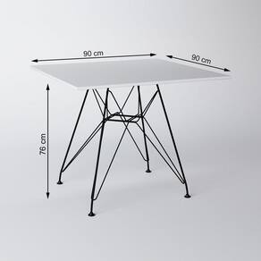 Mesa De Jantar Eames Eiffel Quadrada Branca 90cm Com 4 Cadeiras Brancas Base Ferro PretoO Jogo de Mesa 4 Cadeiras Eames Eiffel se destaca pelo design moderno e sofisticado. A Cadeira Eames Eiffel é confeccionada em polipropileno, sua base é em ferro, o que confere total resistência e conforto. O Jogo de Mesa 4 Cadeiras Eames Eiffel da vida ao ambiente além de combinar com todos os tipos e cores de móveis.CARACTERISTICASTipo: ConjuntoModelo: EiffelFerro: PretoDIMENSÕES DO PRODUTOCadeiraCor: BrancoAltura: 85 cmLargura: 47 cmProfundidade: 50 cmAssento x Chão: 45 cmContém: 04 cadeirasMesa:Cor: BrancoAltura: 76 cmLargura: 90 cmProfundidade: 90 cmObs: Imagens Meramente IlustrativaMesa de Jantar Eames Eiffel Quadrada Branca 90cm com 4 Cadeiras Brancas Base Ferro Preto