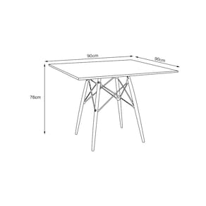 MESA DE JANTAR QUADRADA EAMES EIFFEL 90CM PRETA BASE MADEIRA