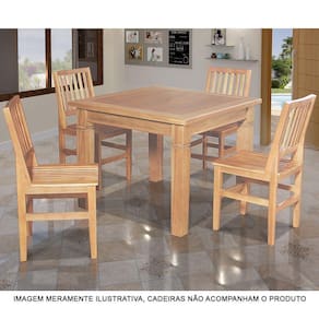 A Mesa de Jantar Estela é um móvel de presença e dá elegância para a sua sala de jantar. O destaque está no detalhe dos pés que levam personalidade ao item. Essa é a chance de deixar a sua casa do jeito que sempre sonhou! Ah, a peça não acompanha cadeiras e você deve adquiri-las separadamente para deixar o uso completo.Tipo: Mesa de Jantar RústicaModelo: Estela Cor: lMedidas:Altura: 80cmLargura: 100cmComprimento: 100cmOBS: A madeira pode apresentar detalhes (ranhuras) da própria madeira e também variações do tom da madeira.ATENÇÃOIMAGENS MERAMENTE ILUSTRATIVAS REALIZADO EDIÇÃO, PODENDO HAVER UMA PEQUENA VARIAÇÃO DE COR DEPENDENDO DE CADA TELA OU MONITOR.Mesa de Jantar Quadrada Madeira MaciÃa RÃstica 1m Estela PÃs Diamante - l