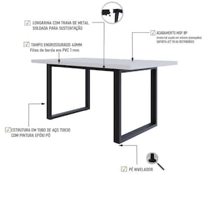 Sobre o ProdutoMesa de Jantar Queens R 160x90x77cm QEMJ9160R çoDescrição do Produto:A mesa de jantar Queens QEMJ9160R é a expressão perfeita da fusão entre elegância e robustez, ideal para ambientes modernos e contemporâneos. Com dimensões de 1,60x0,90m, esta peça impressiona pela sua presença marcante. O tampo engrossurado de 40mm, finalizado com fitas de PVC de 01mm, oferece uma superfície resistente e de excelente acabamento. A estrutura em tubos de aço 70x30mm, complementada por longarinas produzidas com tubos 30x50mm, garante estabilidade e durabilidade, enquanto o design minimalista proporciona um toque moderno e sofisticado a qualquer espaç linha City_Scape captura a sofisticação e o estilo das grandes metrópoles, trazendo móveis inspirados em bairros e cidades icônicas. Com design moderno e cosmopolita, cada peça reflete a elegância urbana, conectando ambientes contemporâneos à atmosfera vibrante das cidades ao redor do mundo. Os tampos engrossurados em MDP BP recobertos com fitas de borda em PVC de 01mm, garantem resistência e durabilidade com um acabamento refinado. As estruturas em aço com soldas a laser e suavizadas, possuem acabamento em pintura epóxi que confere solidez e um visual moderno, garantindo a longevidade e a robustez das peç Inclusos:1 Mesa de JantarDimensões dos Produtos:Mesa de Jantar Queens R 160x90x77cm QEMJ9160R ço: 160 x 90 x 77 cmInformações Logísticas (Comp. X Prof. X Alt.) 168 x 103,5 x 6 cm - Peso: 26,9 74 x 77 x 18 cm - Peso: 7,64 KgPeso Total: 34,54 KgObservações:Não acompanha acessórios decorativos. Imagens meramente ilustrativas.Informações Técnicas / Características:- Cor do Produto: ço- Cor do Predominante: Revestido- Marca: Metalig- Modelo: QEMJ9160R- Linha: City_Scape- Material: Mdp- Material da Estrutura / Pés: Aço- Acabamento: BP- Escala de Brilho: Fosco- Fita de Borda: Pvc - Possui Gavetas: Não - Possui Pés: 2- Pés Niveladores: Sim - Acabamento Estrutura: Epóxi-Pó- Formato: Retangular -Observações: Possui 02 Lomgarinas horizontais de aço.- Suporta Até (kg): 100kg- Comprimento: 160cm- Profundidade: 90cm- Altura: 77cm - Peso Lí.: 32,67Kg- Recomendações de Uso, Manutenção e Limpeza: Para a limpeza, utilize flanela seca ou pano macio levemente umedecido em água. Utilize um pano seco em seguida. Evite com produtos químicos (solventes, thinner, acetona, etc) e não utilize nenhum tipo de esponja de aço.- Necessita de Montagem: Sim / Acompanha Manual de Montagem- Complexidade da Montagem: Média: pode ser montado por mais de uma pessoa e/ou necessite de maior conhecimento para montagem.- Garantia: 01 ano Comprimento: 160 cm | Altura: 77 cm | Marca: Compace | Largura: 90 cm | Quantidade máxima de pedido: 1 | Modelo: QEMJ9160R | Necessita montagem: Sim | Quantidade de volumes: 2 | Produto: Mesa de Jantar | Profundidade: 90 cm | Cômodo indicado: Cozinhas | Cozinhas: Material da estrutura | Material da Estrutura: Aço | Cor: Multicolorido | Industrial: Requer Baterias | Não: Certificação Externa | Manual de montagem e kit acessórios: | Sim: Preço de tabela | Fabricante | Compace: do Modelo | QEMJ9160R: de Caixas | 1: da Peça | Tonalidade: Multicolorido Cor: Branco TX/