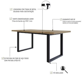 Sobre o ProdutoMesa de Jantar Queens R 180x90x77cm QEMJ9180R çoDescrição do Produto:A mesa de jantar Queens QEMJ9180R é a expressão perfeita da fusão entre elegância e robustez, ideal para ambientes modernos e contemporâneos. Com dimensões de 1,80x0,90m, esta peça impressiona pela sua presença marcante. O tampo engrossurado de 40mm, finalizado com fitas de PVC de 01mm, oferece uma superfície resistente e de excelente acabamento. A estrutura em tubos de aço 70x30mm, complementada por longarinas produzidas com tubos 30x50mm, garante estabilidade e durabilidade, enquanto o design minimalista proporciona um toque moderno e sofisticado a qualquer espaç linha City_Scape captura a sofisticação e o estilo das grandes metrópoles, trazendo móveis inspirados em bairros e cidades icônicas. Com design moderno e cosmopolita, cada peça reflete a elegância urbana, conectando ambientes contemporâneos à atmosfera vibrante das cidades ao redor do mundo. Os tampos engrossurados em MDP BP recobertos com fitas de borda em PVC de 01mm, garantem resistência e durabilidade com um acabamento refinado. As estruturas em aço com soldas a laser e suavizadas, possuem acabamento em pintura epóxi que confere solidez e um visual moderno, garantindo a longevidade e a robustez das peç Inclusos:1 Mesa de JantarDimensões dos Produtos:Mesa de Jantar Queens R 180x90x77cm QEMJ9180R ço: 180 x 90 x 77 cmInformações Logísticas (Comp. X Prof. X Alt.) 188 x 103,5 x 6 cm - Peso: 29,53 74 x 77 x 18 cm - Peso: 7,64 KgPeso Total: 37,17 KgObservações:Não acompanha acessórios decorativos. Imagens meramente ilustrativas.Informações Técnicas / Características:- Cor do Produto: ço- Cor do Predominante: Revestido- Marca: Metalig- Modelo: QEMJ9180R- Linha: City_Scape- Material: Mdp- Material da Estrutura / Pés: Aço- Acabamento: BP- Escala de Brilho: Fosco- Fita de Borda: Pvc - Possui Gavetas: Não - Possui Pés: 2- Pés Niveladores: Sim - Acabamento Estrutura: Epóxi-Pó- Formato: Retangular -Observações: Possui 02 Lomgarinas horizontais de aço.- Suporta Até (kg): 100kg- Comprimento: 180cm- Profundidade: 90cm- Altura: 77cm - Peso Lí.: 35,13Kg- Recomendações de Uso, Manutenção e Limpeza: Para a limpeza, utilize flanela seca ou pano macio levemente umedecido em água. Utilize um pano seco em seguida. Evite com produtos químicos (solventes, thinner, acetona, etc) e não utilize nenhum tipo de esponja de aço.- Necessita de Montagem: Sim / Acompanha Manual de Montagem- Complexidade da Montagem: Média: pode ser montado por mais de uma pessoa e/ou necessite de maior conhecimento para montagem.- Garantia: 01 ano Comprimento: 180 cm | Altura: 77 cm | Marca: Compace | Largura: 90 cm | Quantidade máxima de pedido: 1 | Modelo: QEMJ9180R | Necessita montagem: Sim | Quantidade de volumes: 2 | Produto: Mesa de Jantar | Profundidade: 90 cm | Cômodo indicado: Cozinhas | Material da estrutura: Aço | Cor: Multicolorido | Tonalidade: Multicolorido | Industrial: Requer Baterias | Não: Certificação Externa | Manual de montagem e kit acessórios: | Sim: Preço de tabela | Fabricante | Compace: do Modelo | QEMJ9180R: de Caixas | 1: da Peça Cor: Vermont OAK/