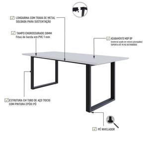 Sobre o ProdutoMesa de Jantar Queens RG2 200x90x77cm QEMJ9200RG2 çoDescrição do Produto:A mesa de jantar Queens QEMJ9200RG2 é a expressão perfeita da fusão entre elegância e robustez, ideal para ambientes modernos e contemporâneos. Com dimensões de 2,00x0,90m, esta peça impressiona pela sua presença marcante. O tampo engrossurado de 30mm com bordas em 45, finalizado com fitas de PVC de 01mm, oferece uma superfície resistente e de excelente acabamento. A estrutura em tubos de aço 70x30mm, complementada por longarinas produzidas com tubos 30x50mm, garante estabilidade e durabilidade, enquanto o design minimalista proporciona um toque moderno e sofisticado a qualquer espaç linha City_Scape captura a sofisticação e o estilo das grandes metrópoles, trazendo móveis inspirados em bairros e cidades icônicas. Com design moderno e cosmopolita, cada peça reflete a elegância urbana, conectando ambientes contemporâneos à atmosfera vibrante das cidades ao redor do mundo. Os tampos engrossurados em MDP BP recobertos com fitas de borda em PVC de 01mm, garantem resistência e durabilidade com um acabamento refinado. As estruturas em aço com soldas a laser e suavizadas, possuem acabamento em pintura epóxi que confere solidez e um visual moderno, garantindo a longevidade e a robustez das peç Inclusos:1 Mesa de JantarDimensões dos Produtos:Mesa de Jantar Queens RG2 200x90x77cm QEMJ9200RG2 ço: 200 x 90 x 77 cmInformações Logísticas (Comp. X Prof. X Alt.) 208 x 103,5 x 6 cm - Peso: 28,24 74 x 77 x 18 cm - Peso: 7,64 KgPeso Total: 35,88 KgObservações:Não acompanha acessórios decorativos. Imagens meramente ilustrativas.Informações Técnicas / Características:- Cor do Produto: ço- Cor do Predominante: Revestido- Marca: Metalig- Modelo: QEMJ9200RG2- Linha: City_Scape- Material: Mdp- Material da Estrutura / Pés: Aço- Acabamento: BP- Escala de Brilho: Fosco- Fita de Borda: Pvc - Possui Gavetas: Não - Possui Pés: 2- Pés Niveladores: Sim - Acabamento Estrutura: Epóxi-Pó- Formato: Retangular -Observações: Possui 02 Lomgarinas horizontais de aço.- Suporta Até (kg): 100kg- Comprimento: 200cm- Profundidade: 90cm- Altura: 77cm - Peso Lí.: 33,68Kg- Recomendações de Uso, Manutenção e Limpeza: Para a limpeza, utilize flanela seca ou pano macio levemente umedecido em água. Utilize um pano seco em seguida. Evite com produtos químicos (solventes, thinner, acetona, etc) e não utilize nenhum tipo de esponja de aço.- Necessita de Montagem: Sim / Acompanha Manual de Montagem- Complexidade da Montagem: Média: pode ser montado por mais de uma pessoa e/ou necessite de maior conhecimento para montagem.- Garantia: 01 ano Comprimento: 200 cm | Altura: 77 cm | Marca: Compace | Largura: 90 cm | Modelo: QEMJ9200RG2 | Quantidade máxima de pedido: 1 | Necessita montagem: Sim | Quantidade de volumes: 2 | Profundidade: 90 cm | Produto: Mesa de Jantar | Cômodo indicado: Cozinhas | Cor: Multicolorido | Material da Estrutura: Aço | Tonalidade: Multicolorido | Industrial: Requer Baterias | Não: Certificação Externa | Manual de montagem e kit acessórios: | Sim: Preço de tabela | 1004: Fabricante | Compace: do Modelo | QEMJ9200RG2: de Caixas | 1: da Peça Cor: Branco TX/