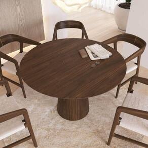 Mesa De Jantar Redonda 120cm Scandi 6 Lugares Lamina Natural De Madeira Castanho Mesa de Jantar Redonda 120cm Scandi 6 lugares Lamina Natural de Madeira Castanho - Descrição