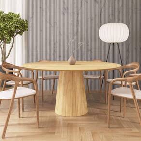 A Mesa de Jantar Redonda Scandi é a escolha perfeita para aqueles que buscam elegância e estilo em sua sala de jantar. O tampo tem sua estrutura em sarrafeado de madeira e lâmina natural de madeira Cinamomo. A madeira Cinamomo é conhecida por sua graciosidade e textura única, que acrescentam um toque de autenticidade e luxo ao seu espaço. Sua base cilíndrica é um exemplo de design contemporâneo, proporcionando estabilidade e elegância. Sua simplicidade minimalista torna-a versátil o suficiente para se adequar a uma variedade de estilos de decoração. Com um diâmetro de 160cm, esta mesa acomoda confortavelmente 8 lugares, tornando-a ideal para reuniões familiares e jantares com amigos.