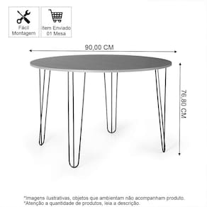 Mesa de Jantar Redonda 4 Lugares 90cm Base de Ferro Hairpin