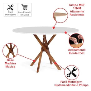 Mesa de Jantar Redonda 4 Lugares 90cm em Madeira June