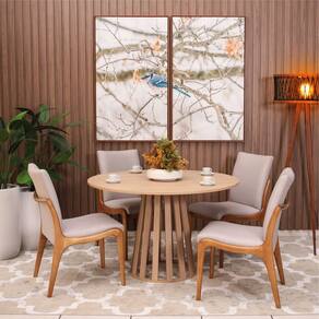 Mesa de Jantar Redonda 4 Lugares 90cm em MDF Gabi Jade -